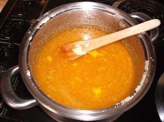 1. First melt the butter/ margarien & sugar together in a small pot on the stove...as per the picture below.