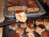 Wait till it cools down before you start cutting it up, i didn't listen and started cutting after i've taken it out. Nothing serious happend there was just lots of crumbs.