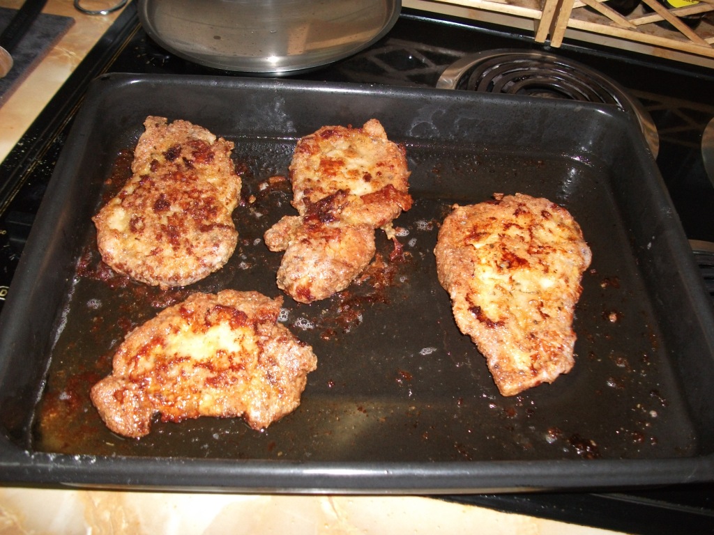 5. When you have crumbed them all, put them in your oven dish and put it back into the oven, it should take about 15 to 20 minutes for them to be ready, but keep checking....Don't let it burn.